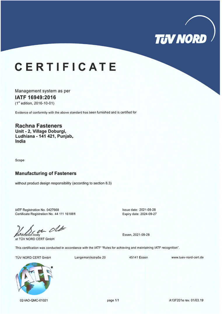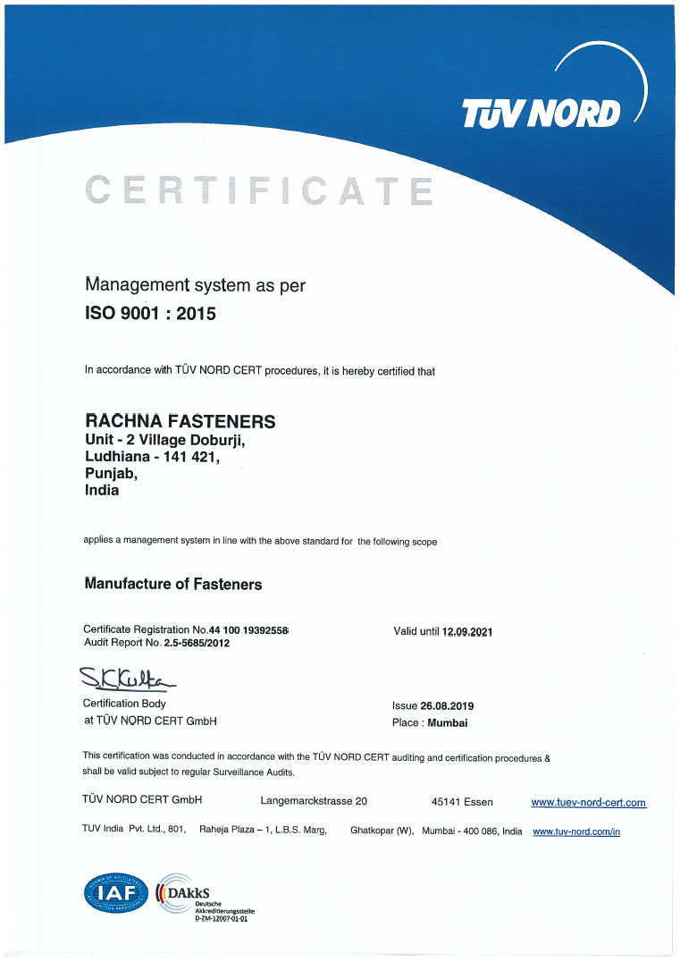 At RACHNA FASTENERS we continually strive to satisfy the ever-changing demands and requirements of our varied customer base.